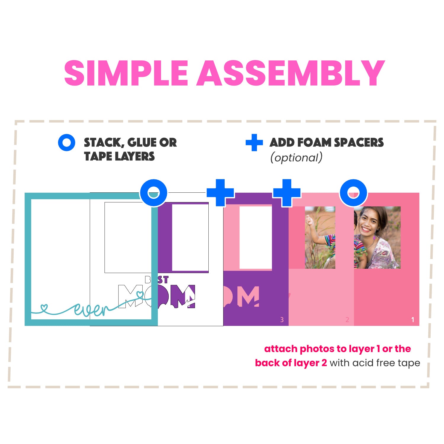 Make an adorable gift for mom with this layered picture frame shadow box project for Cricut®, Silhouette®, xTool®, Glowforge® and more! Makes a perfect Mother's day gift or Holiday gift for Mom.